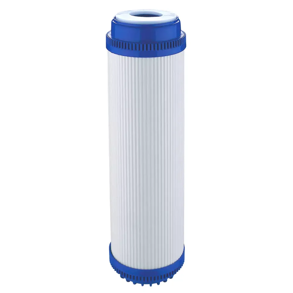 Granulado de carvão ativado / UDF pré-filtro de alta eficiência reduz e remove: cloro, compostos orgânicos voláteis (VO C), pesticidas, nitratos, herbicidas, sabores, odor e desinfecção por produtos (Cloraminas, THM, TCE). Os cartuchos são totalmente construídos com materiais e mídia da FDA.