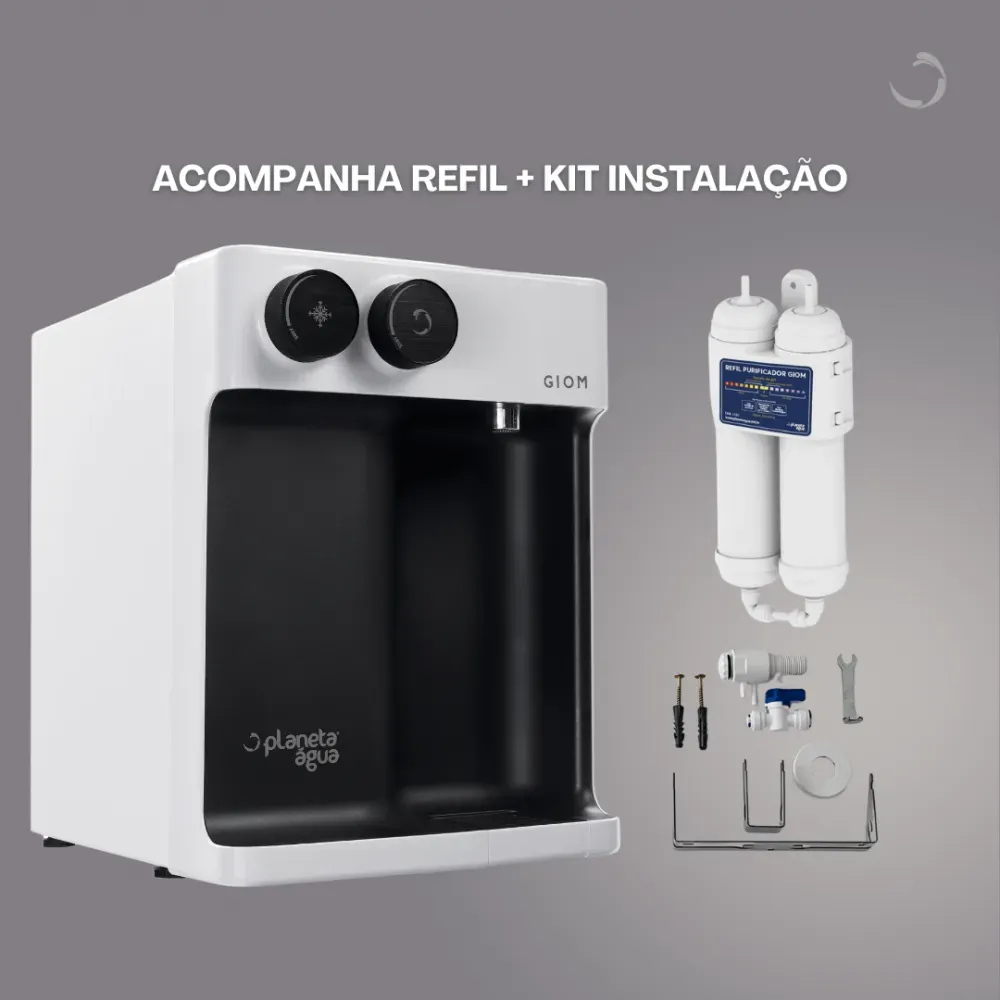O nosso lançamento vai levar todo o poder da água alcalina para a sua casa com mais economia! O Purificador de Água Natural, Gelada e Alcalina GIOM tem refil duplo com troca fácil, permitindo a redução do cloro livre, retenção de partículas sólidas e a elevação do pH da água.